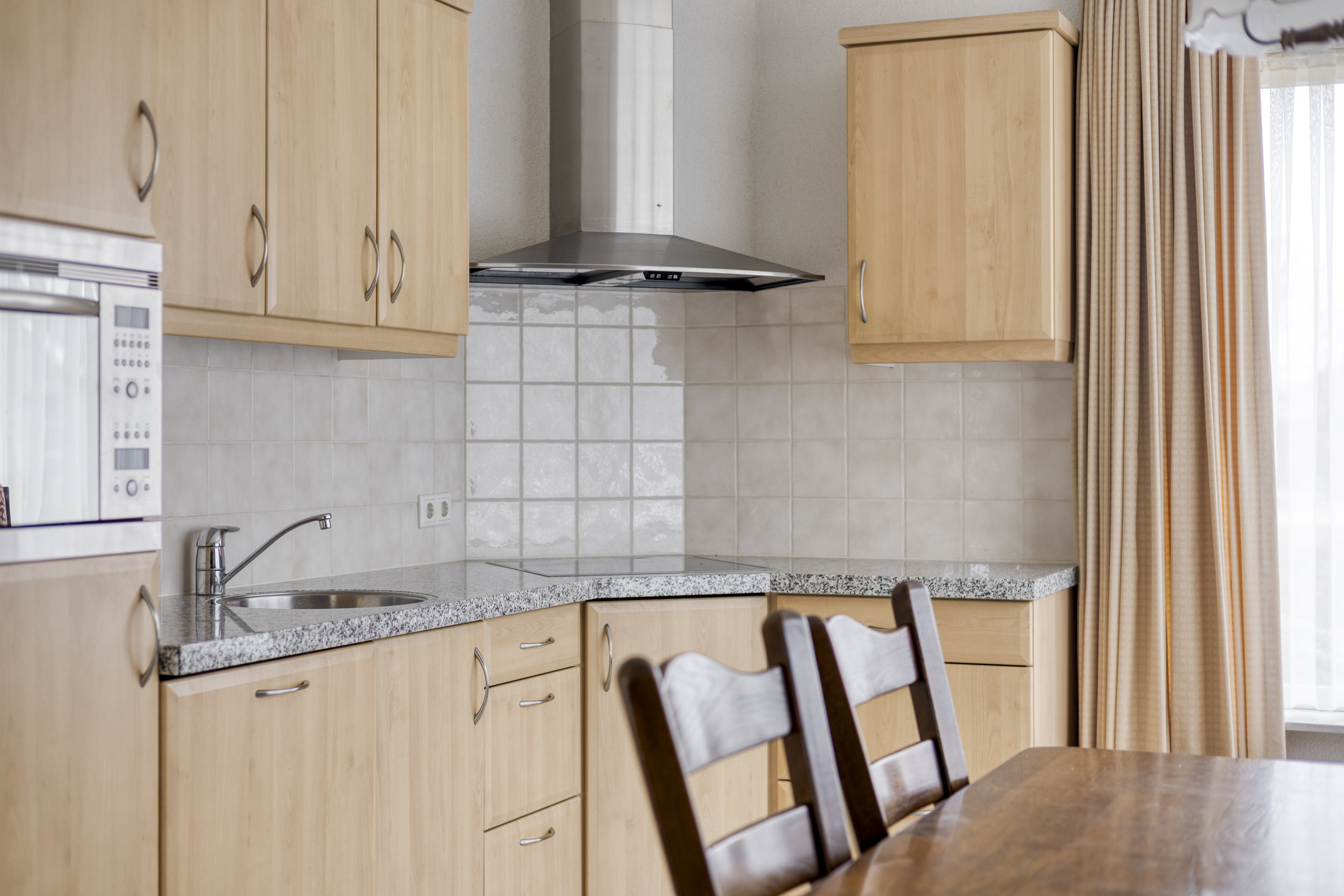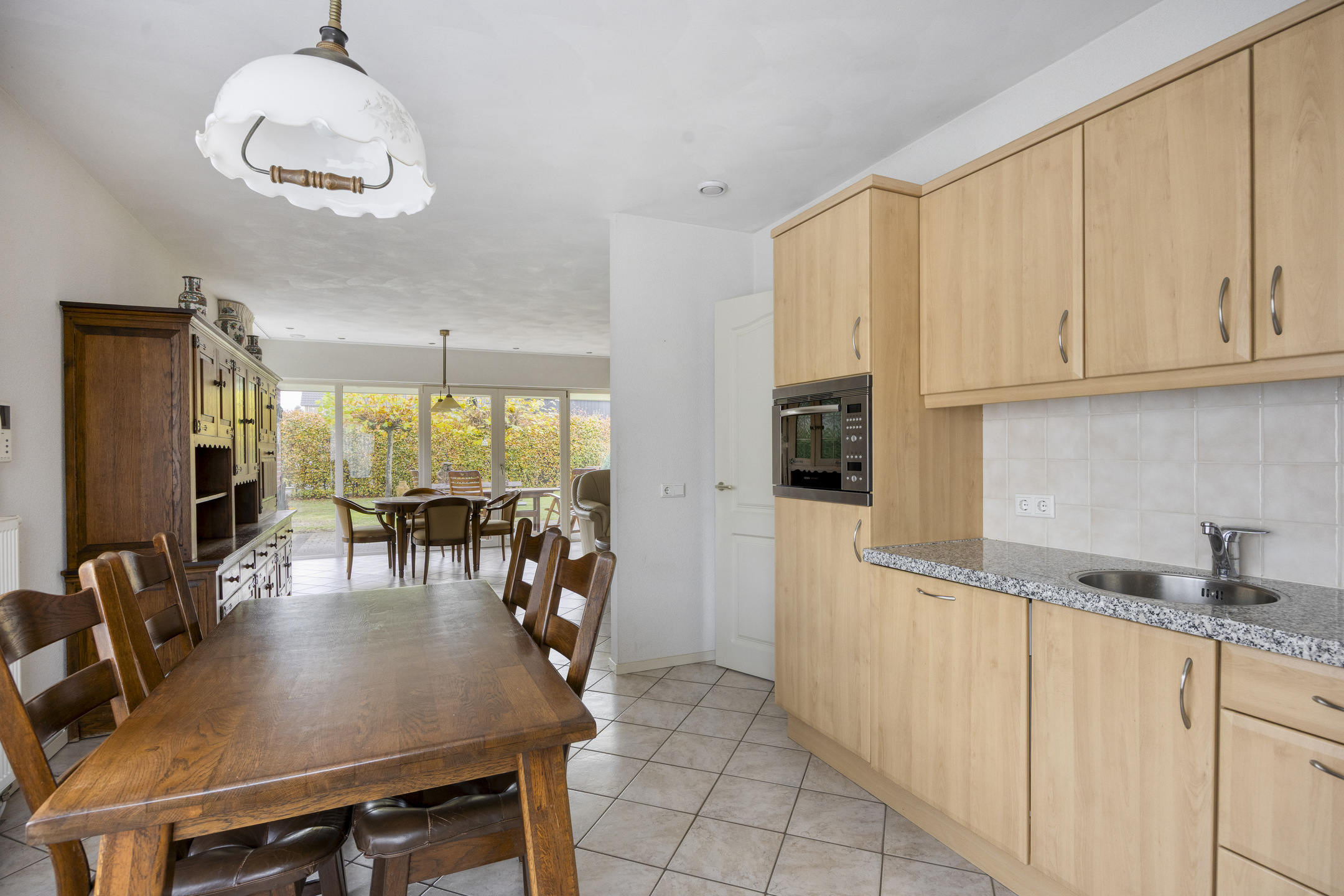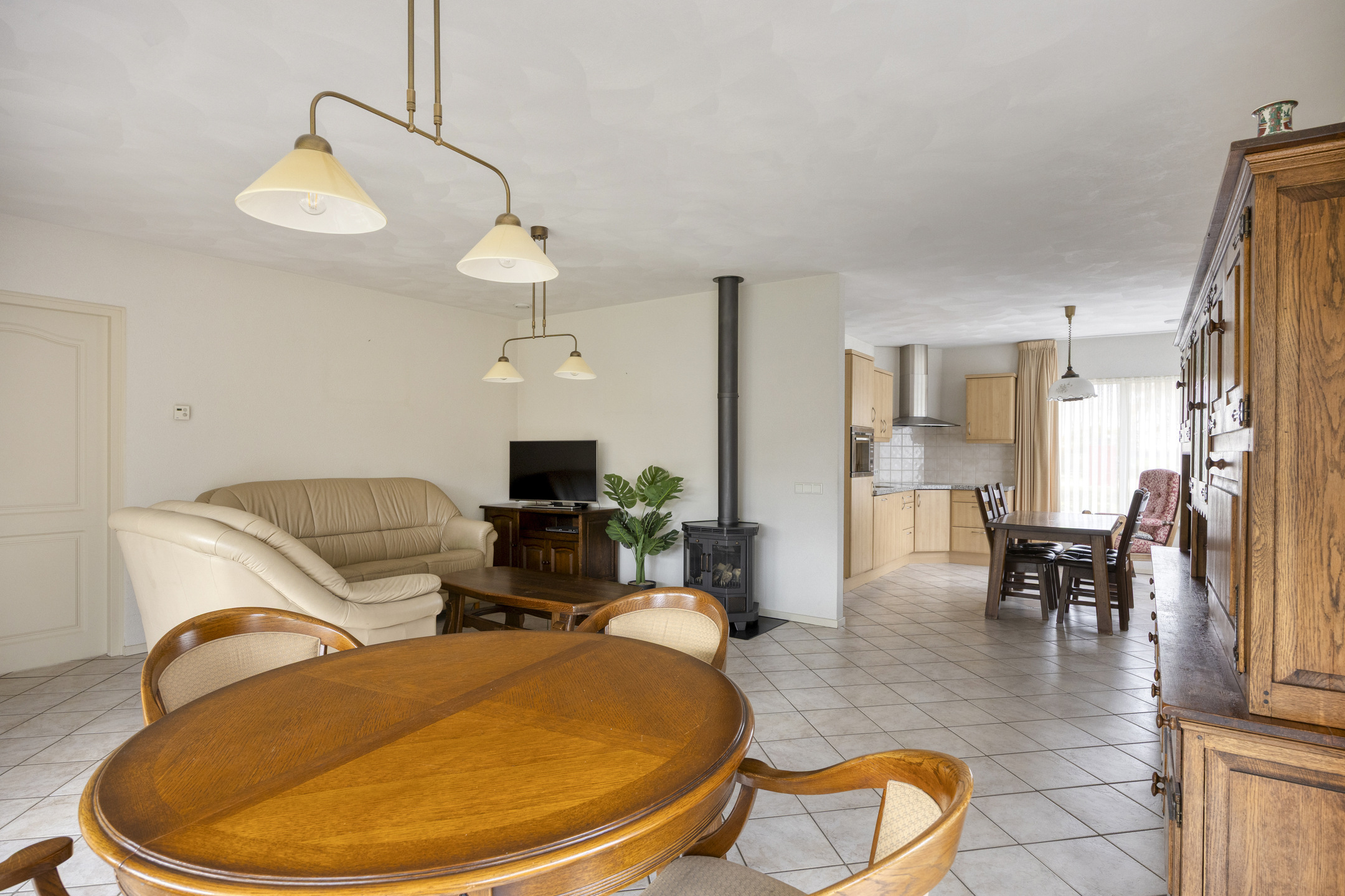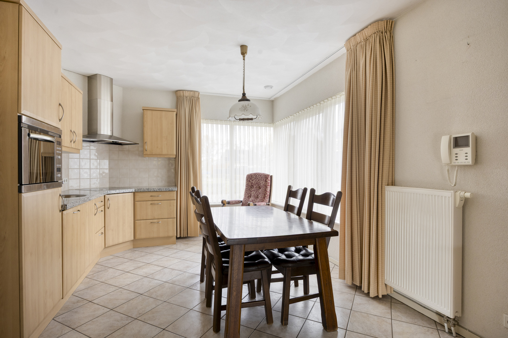De keukenopstelling is voorzien van een koelkast (2024), vaatwasser (2025), combimagnetron en inductiekookplaat (2024) met afzuigkap.