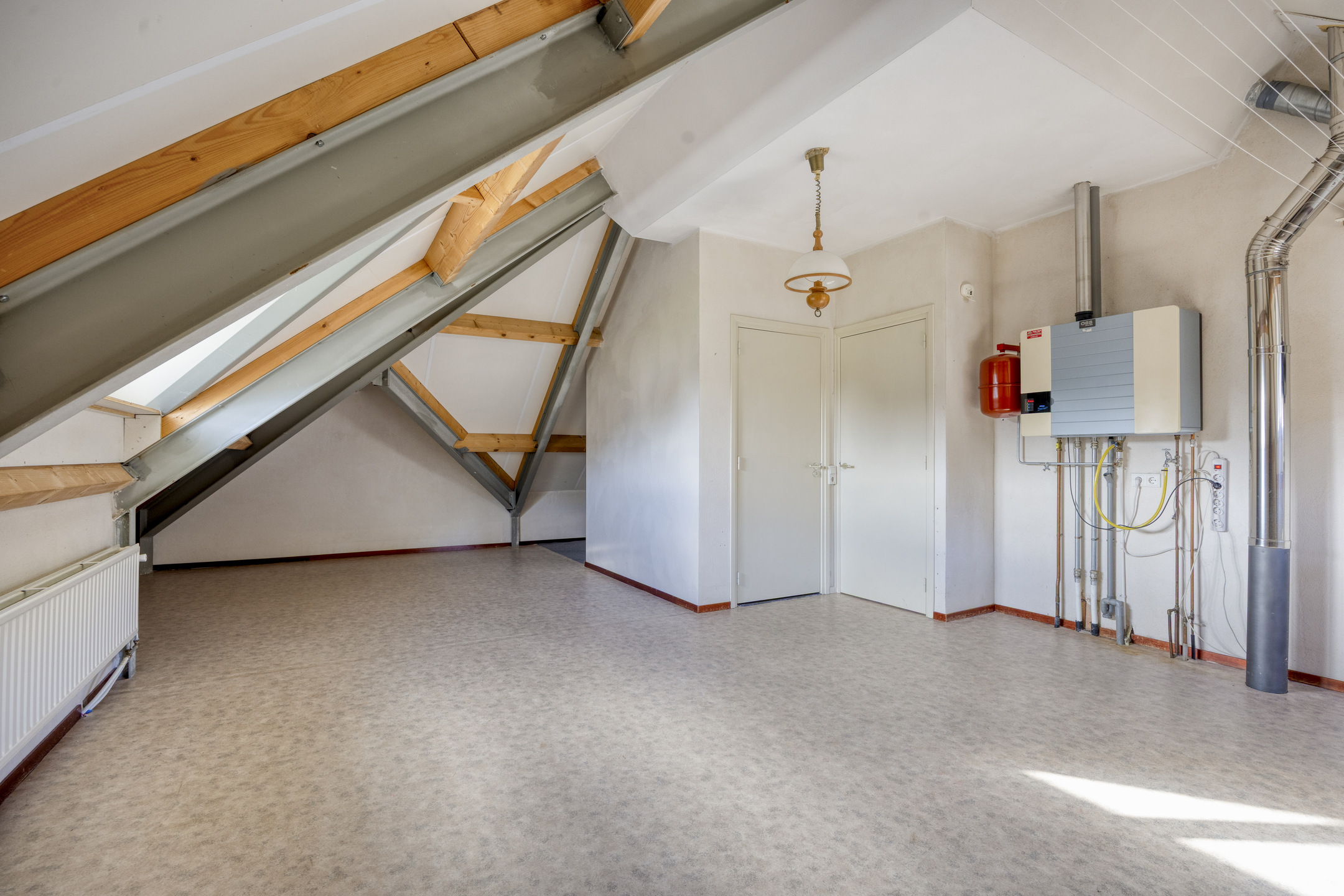 1e verdieping: via een vaste trap bereikbaar grote open zolderverdieping met 3 dakkapellen en 2e badkamer. Op de zolderverdieping is het mogelijk om extra slaapkamers te creëren.