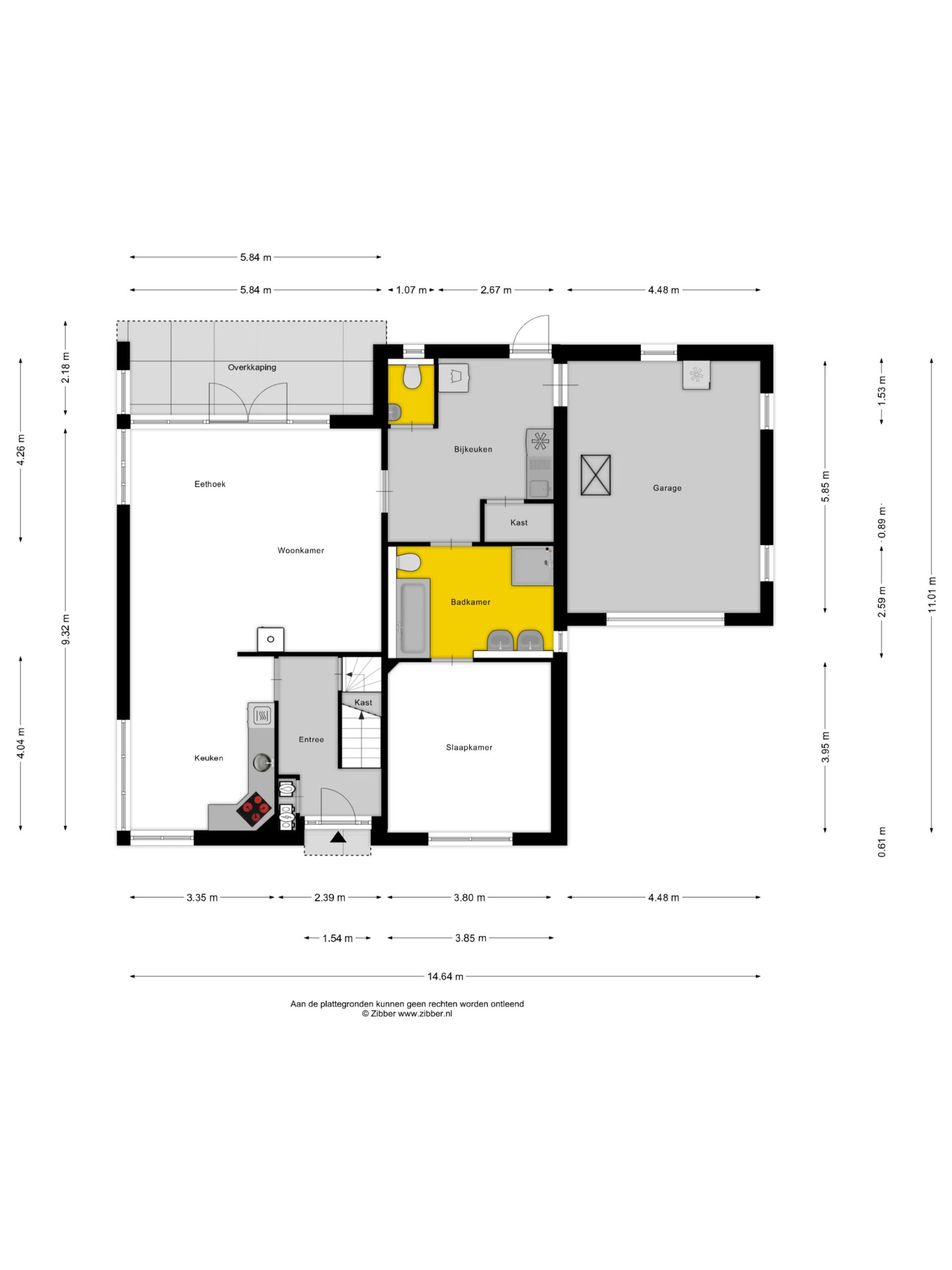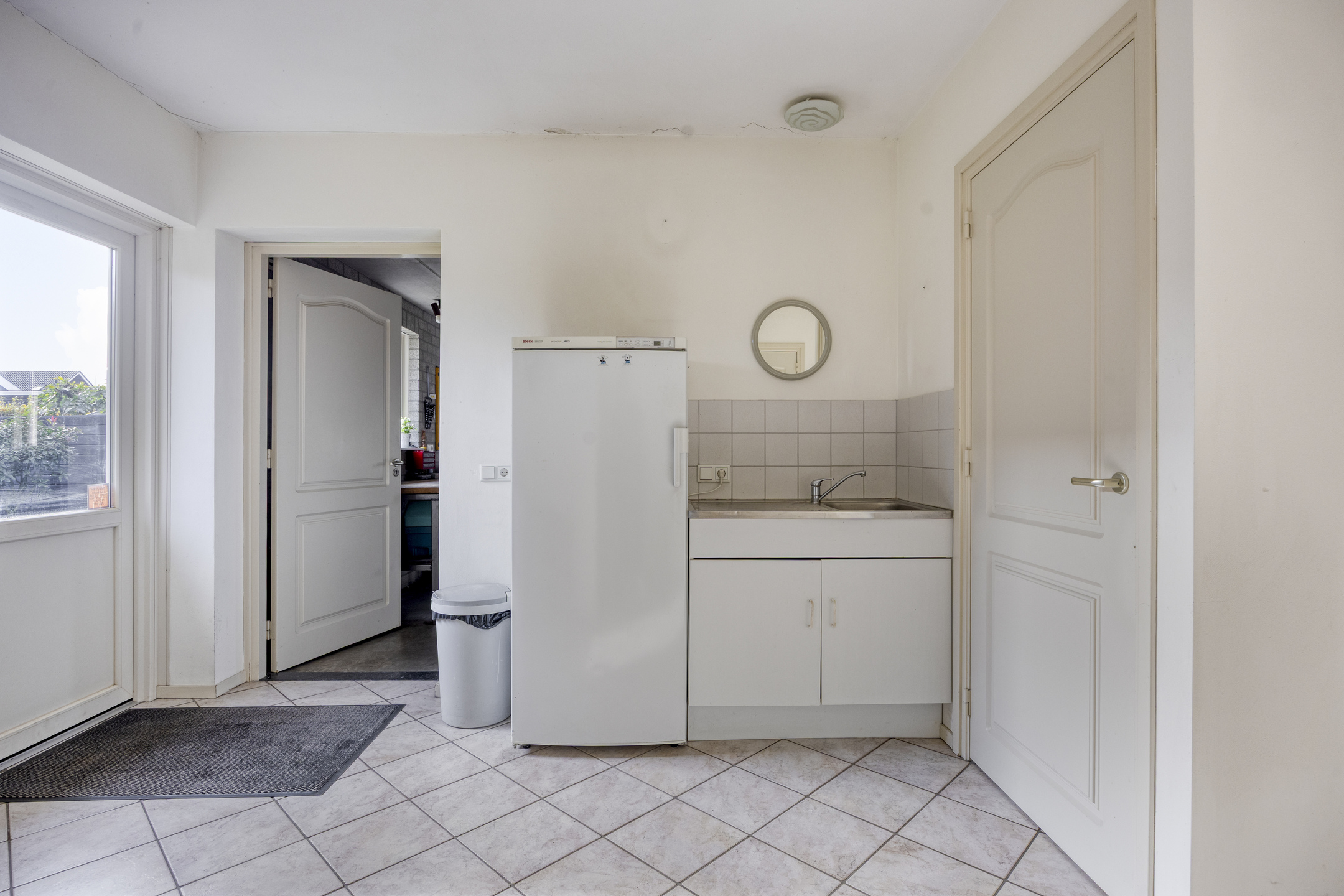 Begane grond: entree/ hal met toegang tot de keuken. Via de keuken kom je in de woonkamer, vanuit de woonkamer is de bijkeuken bereikbaar met de naastgelegen badkamer en de daar aangrenzende slaapkamer. In de bijkeuken zijn de witgoedaansluitingen, het toilet en de toegang tot de garage.