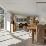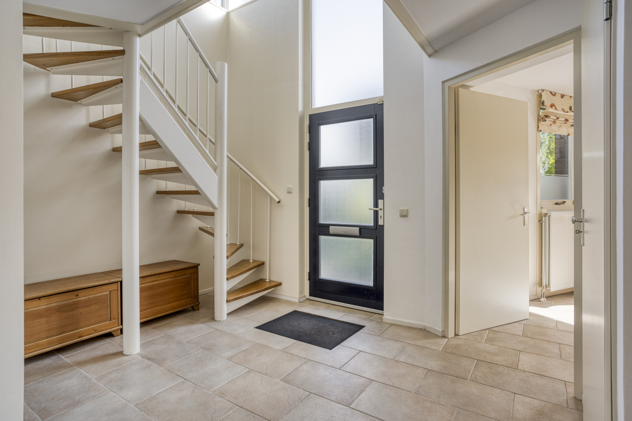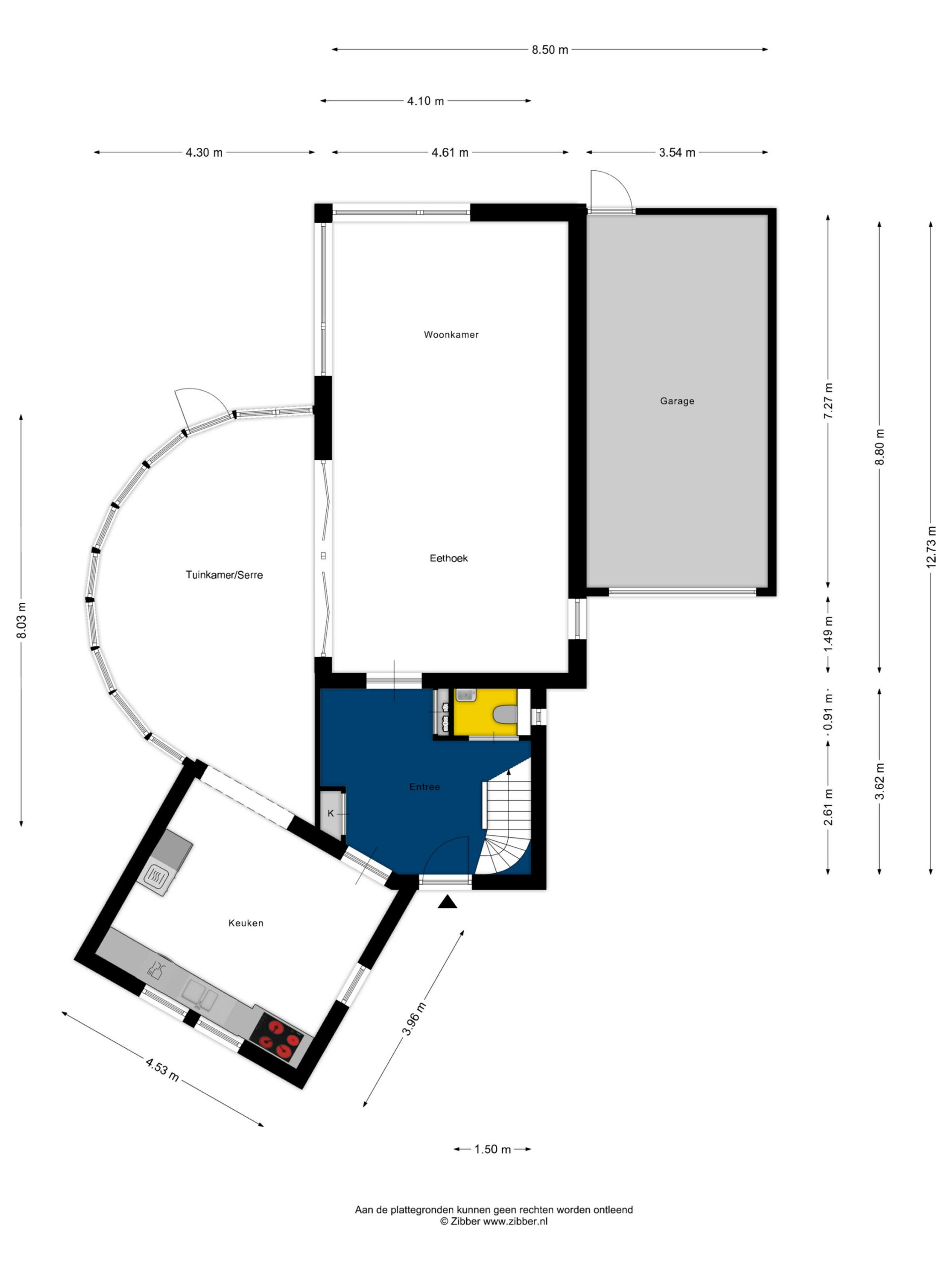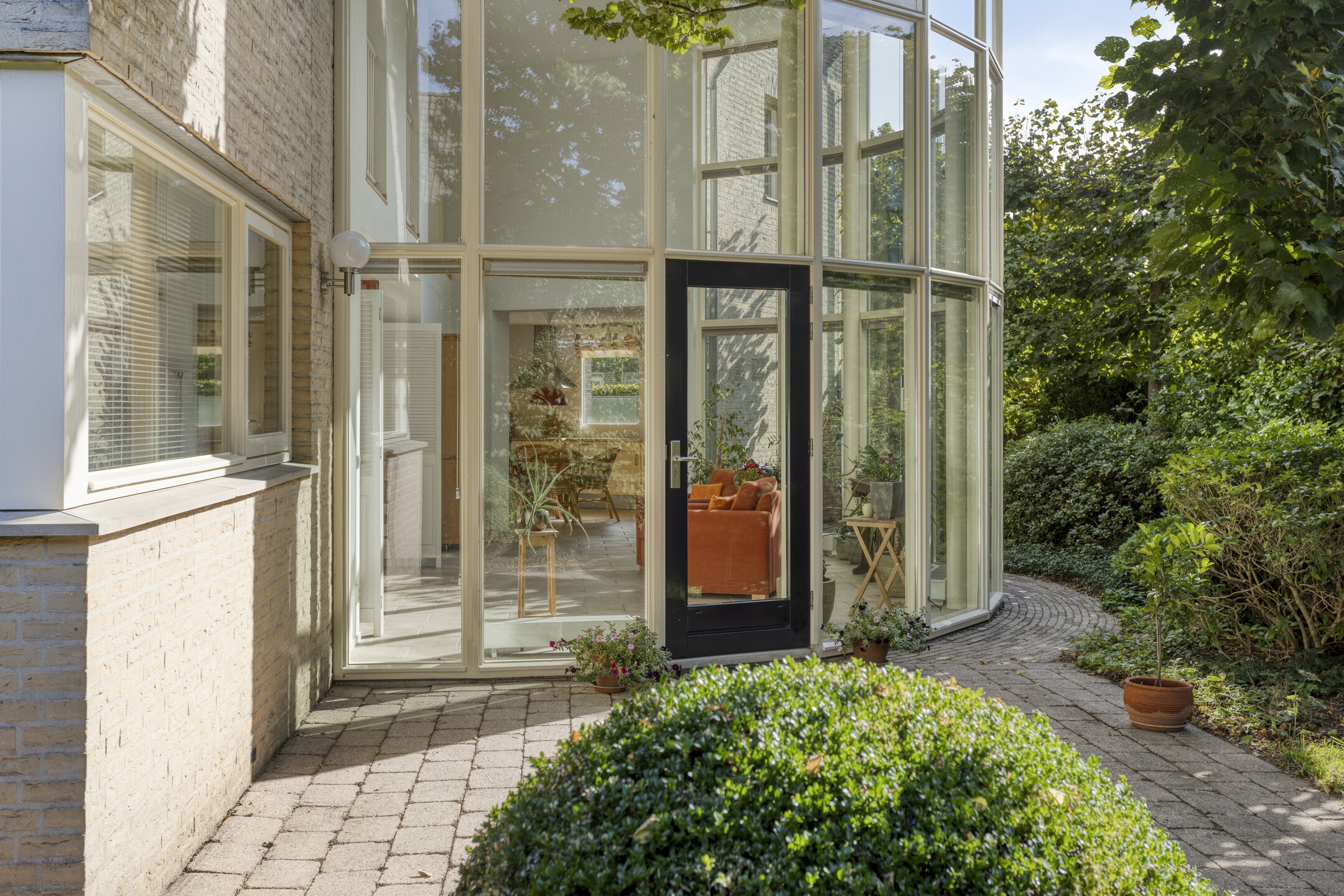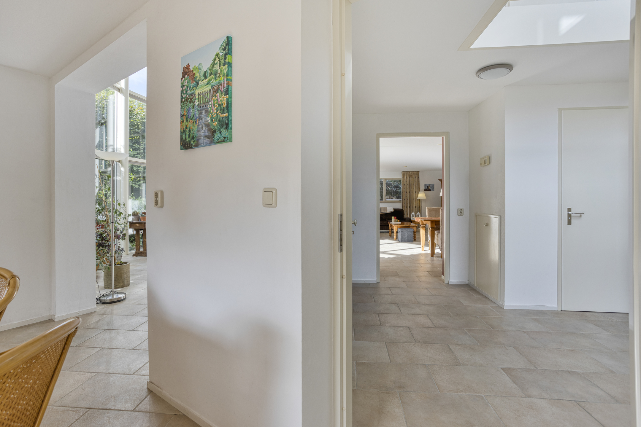 Begane grond: ruime hal met meterkast en toilet ingericht met wandcloset en fonteintje. Aan de voorzijde van de woning gelegen woonkeuken die in halfopen verbinding staat met de tuinkamer/ serre met veel natuurlijke lichtinval door de grote raampartijen en openslaande deuren naar de achtertuin. Aansluitend aan deze serre bevindt zich nog de riante woonkamer.