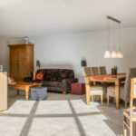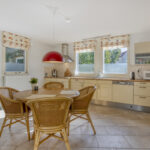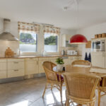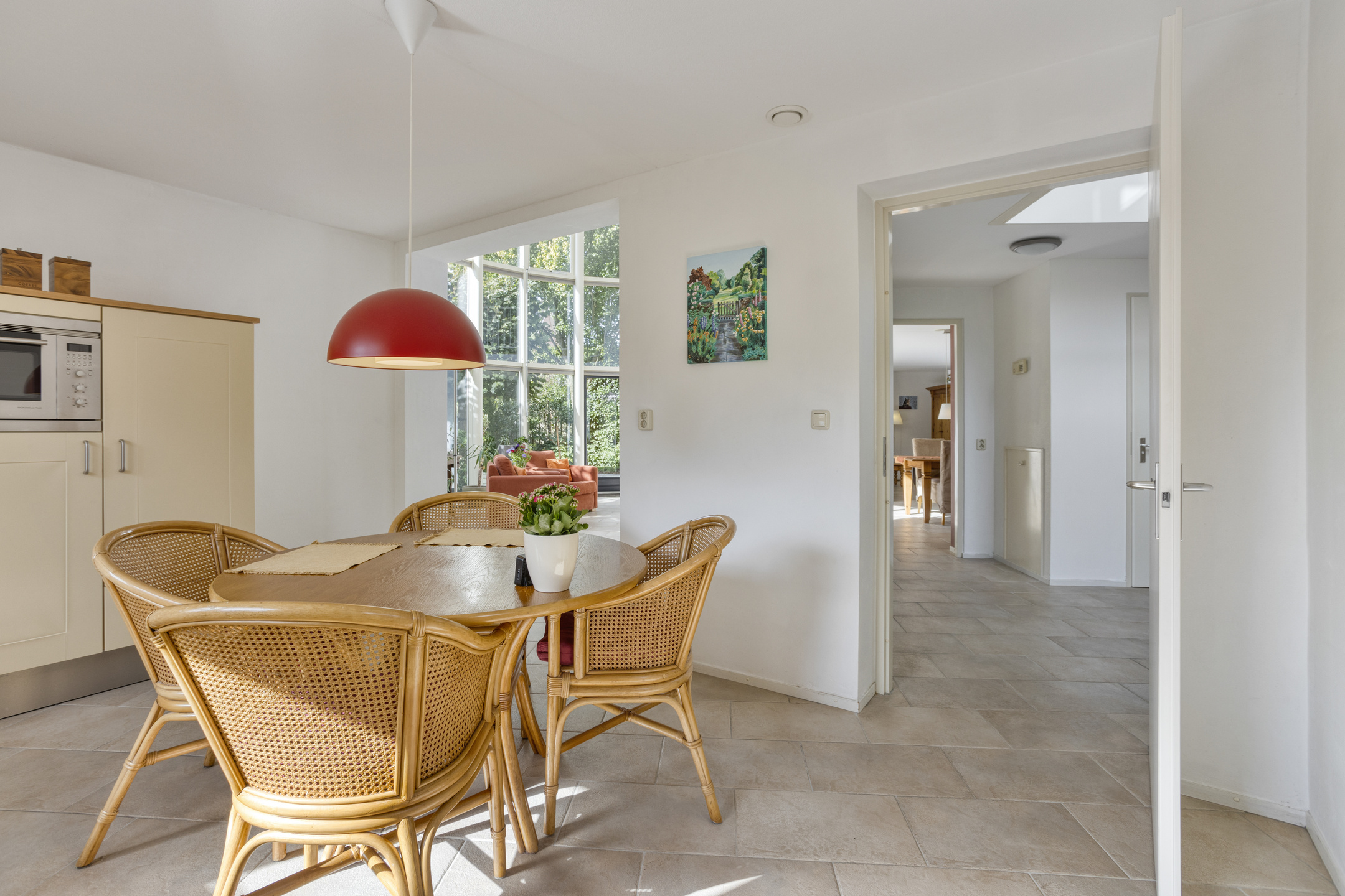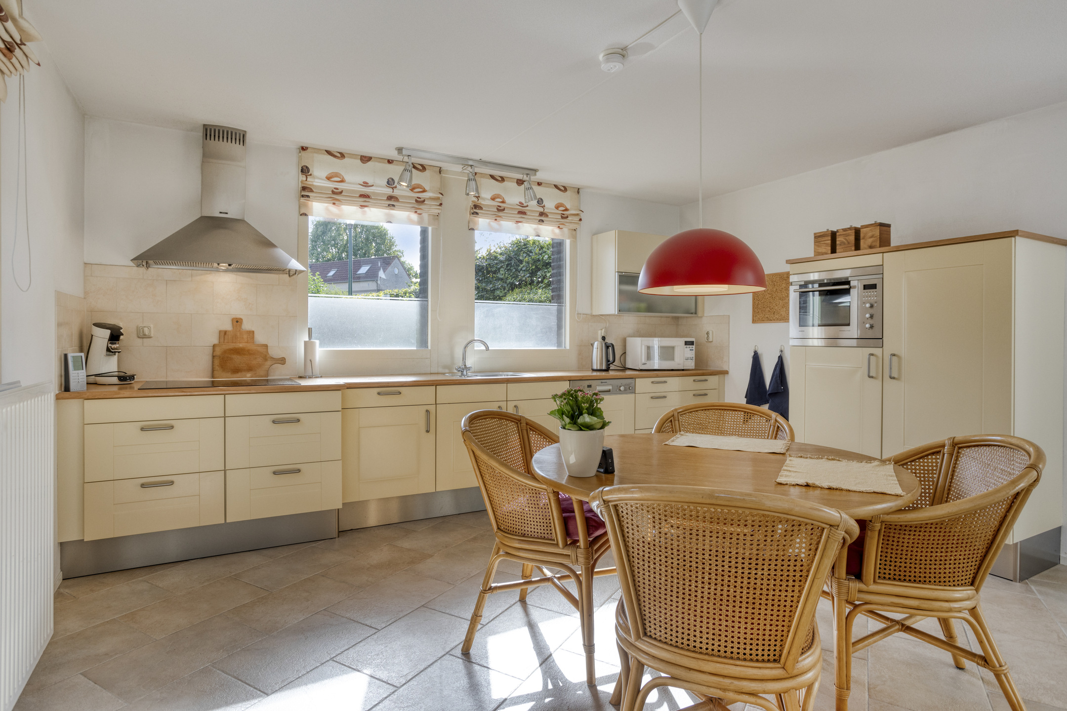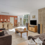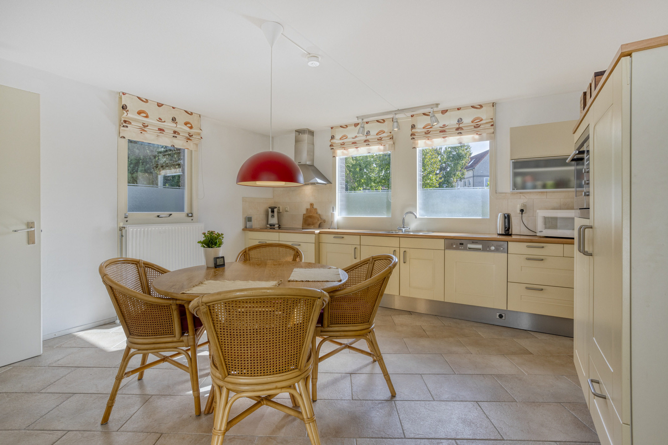 De keukenopstelling is voorzien van een keramische kookplaat, afzuigkap, combioven, vaatwasser, koelkast en diepvries.