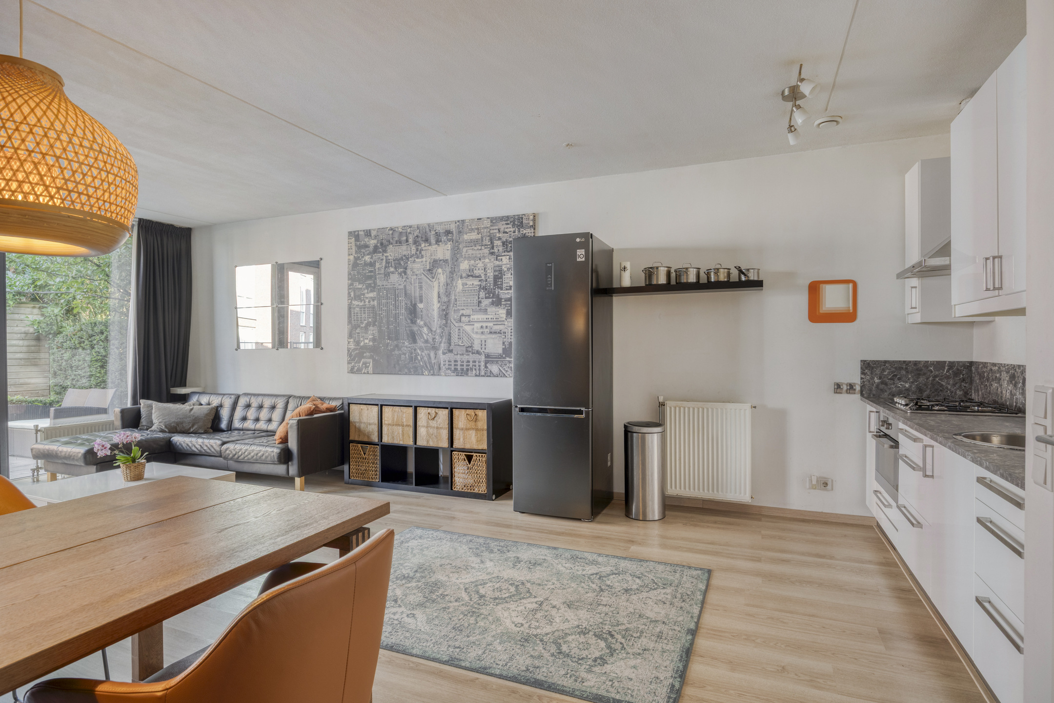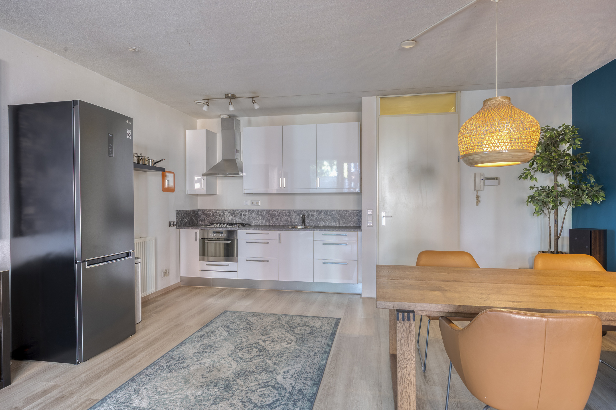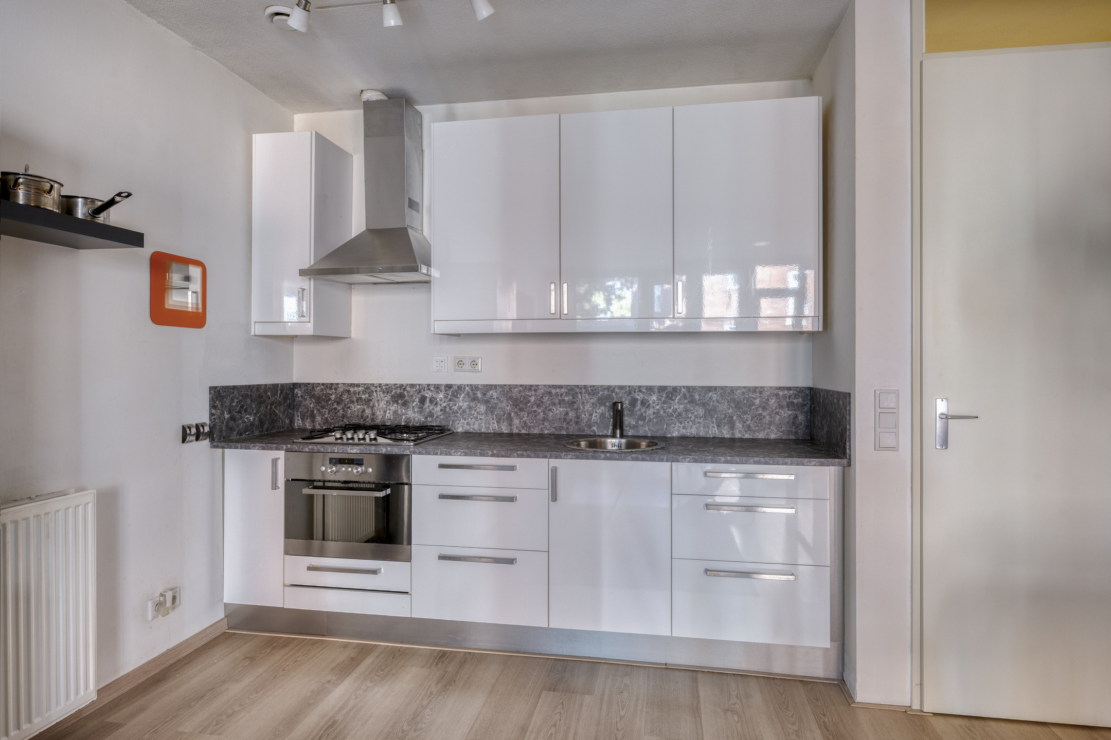De keukenopstelling is voorzien van een gaskookplaat met afzuigkap en een combioven. Het appartement is volledig geïsoleerd en voorzien van mechanische ventilatie.