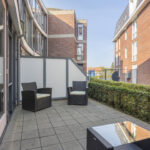 Eigen entree/ hal met toilet, ruime slaapkamer, badkamer voorzien van een douche, vaste wastafel en wasmachine-aansluiting. Woonkamer met een open keuken, voorzien van diverse inbouwapparatuur. Via de openslaande deuren in de woonkamer kom je op…